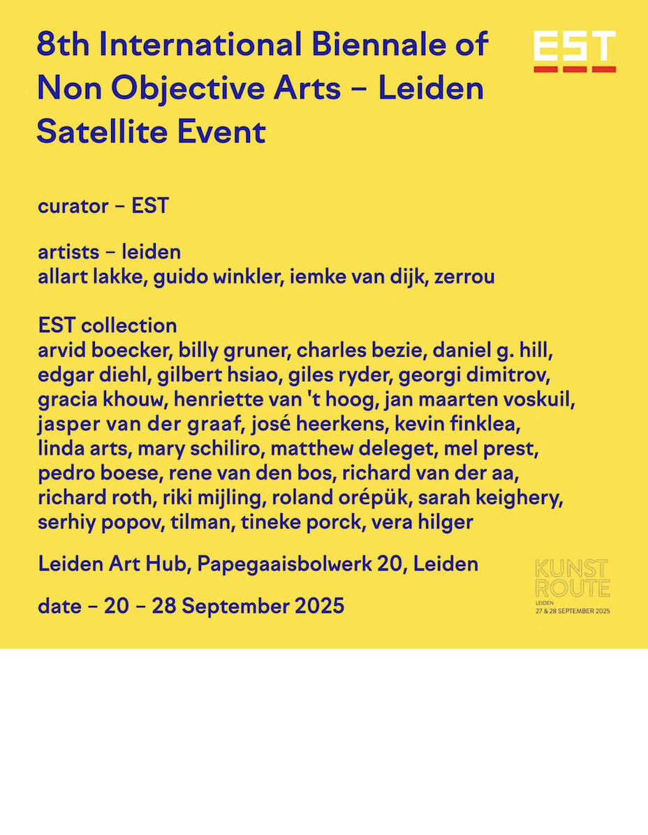 September 20-28, 2025EST Art Foundation is delighted to announce that that are making preparations for our upcoming event for Kunstroute Leiden, which turned into one of the worldwide satellite events of the Biennale International Non Objectif de Pont de Claix under auspicien of Foundation Roland Orépük.